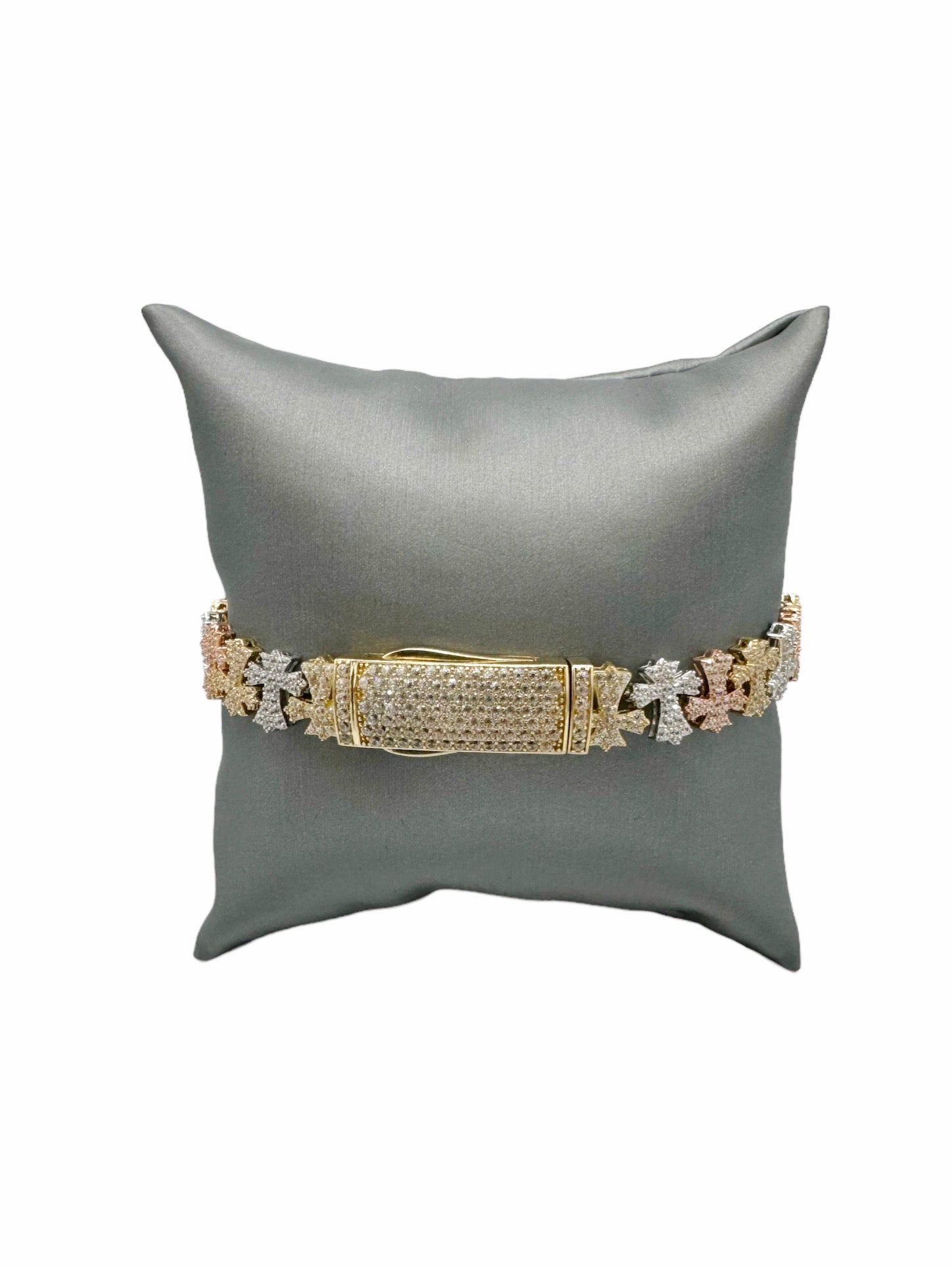 New 14K CZ Tricolor Cross Bracelet (9.9MM). H.J™️
