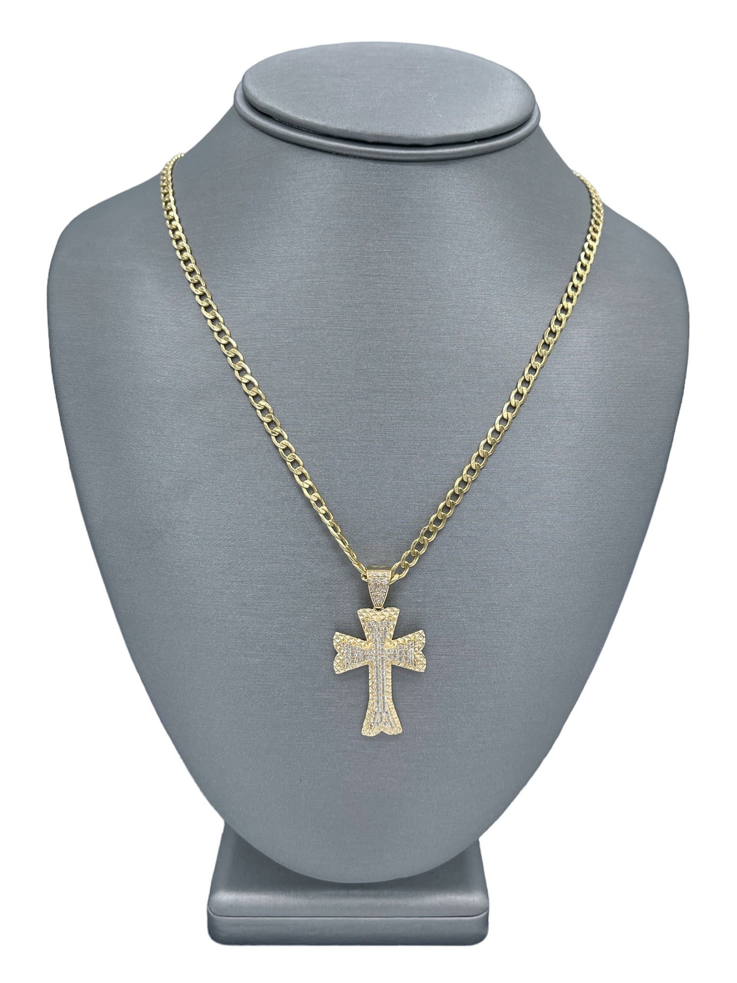New 14K CZ Cross Pendant & Cuban Chain (4.0MM). H.J™️
