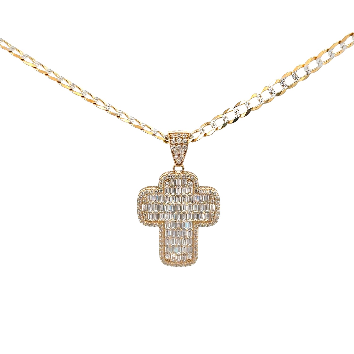 New 14K CZ Cross Pendant & Two Tone Solid Cuban Chain Made Of Real 14K Yellow Gold, 100%  gold. Buy with confidence from H.J™️