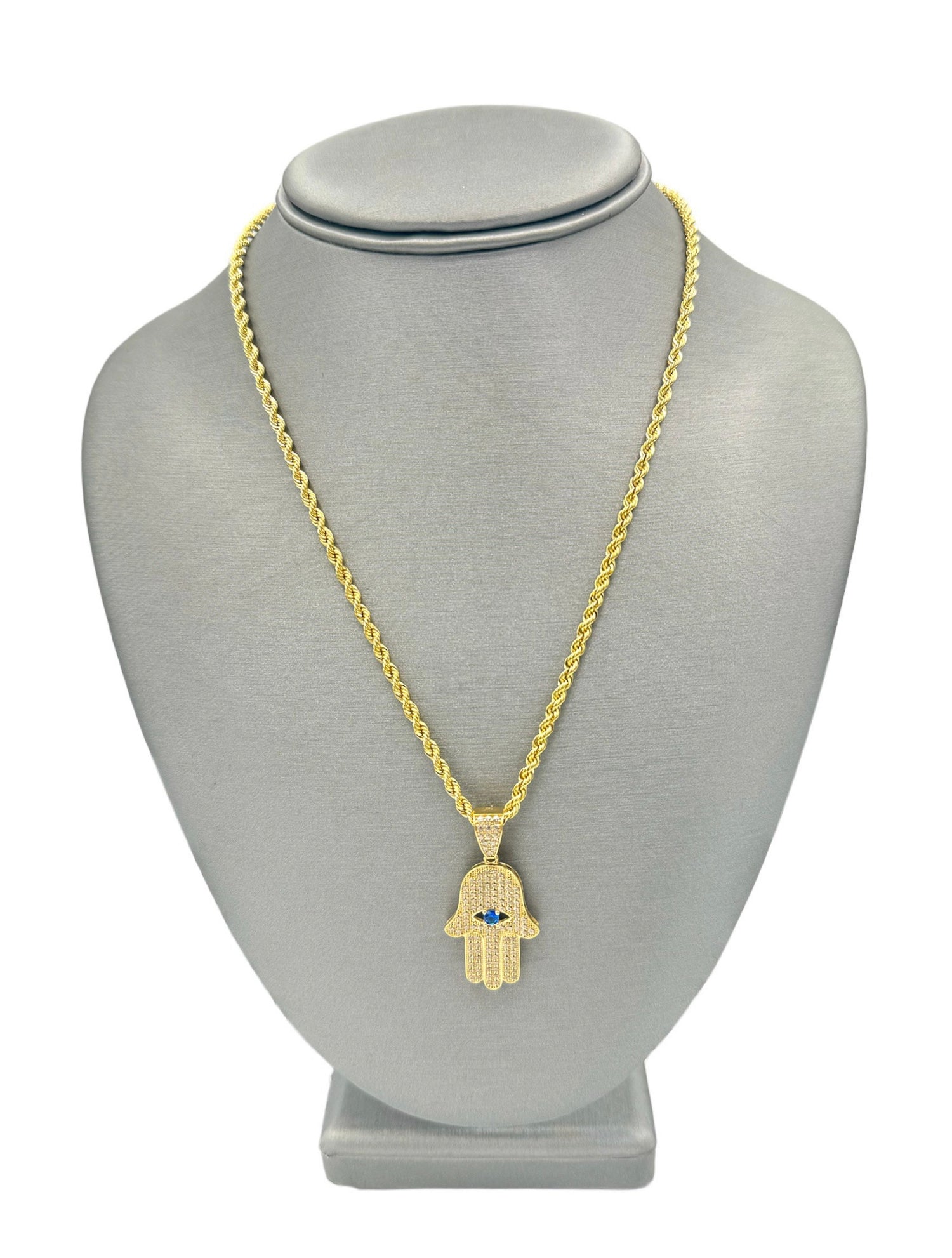 New 14K CZ Hamsa Pendant & Rope Chain (2.9MM). H.J™️