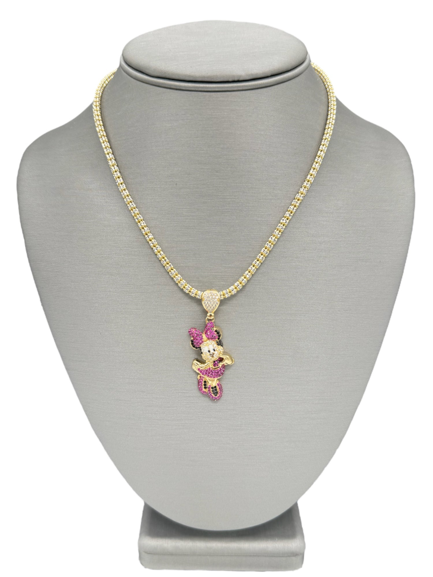 New 14K CZ Minnie Pendant & Ice Chain (3.4MM). H.J™️