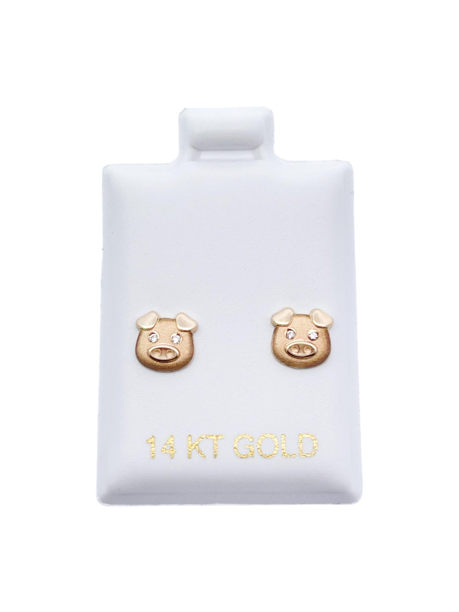 NEW 14k CZ Pig Earrings Made of Real 14k Yellow Gold, 100% Guaranteed Gold. Buy with Confidence from H.J™️
