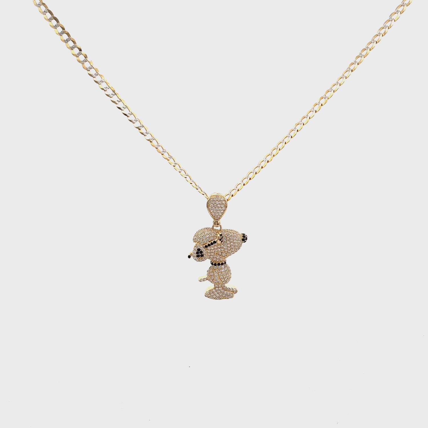New 14k CZ Snoopy Pendant & Solid Two Tone Cuban Chain (3.7MM). H.J™️