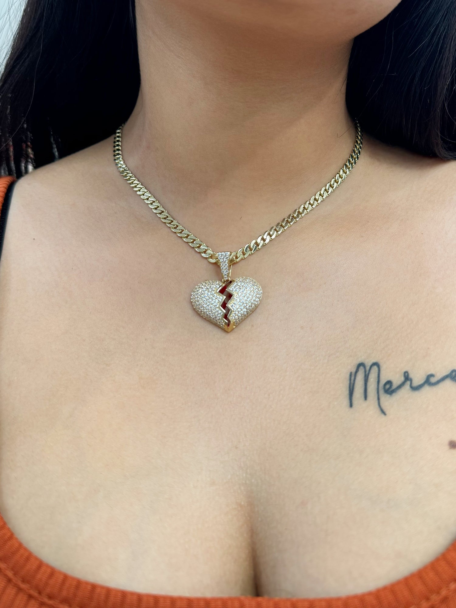 New 14K CZ Broken Heart Pendant & Semi Solid Itallo Choker Made of Real 14K Yellow Gold, 100% Guaranteed Gold. Buy With Confidence From H.J™️