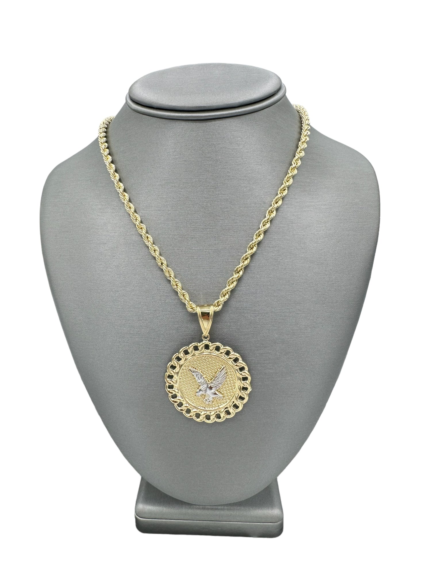New 14K Eagle Pendant & Semi Solid Rope Chain Made of Real 14K Yellow Gold, 100% Guaranteed Gold. Buy with Confidence from H.J™️