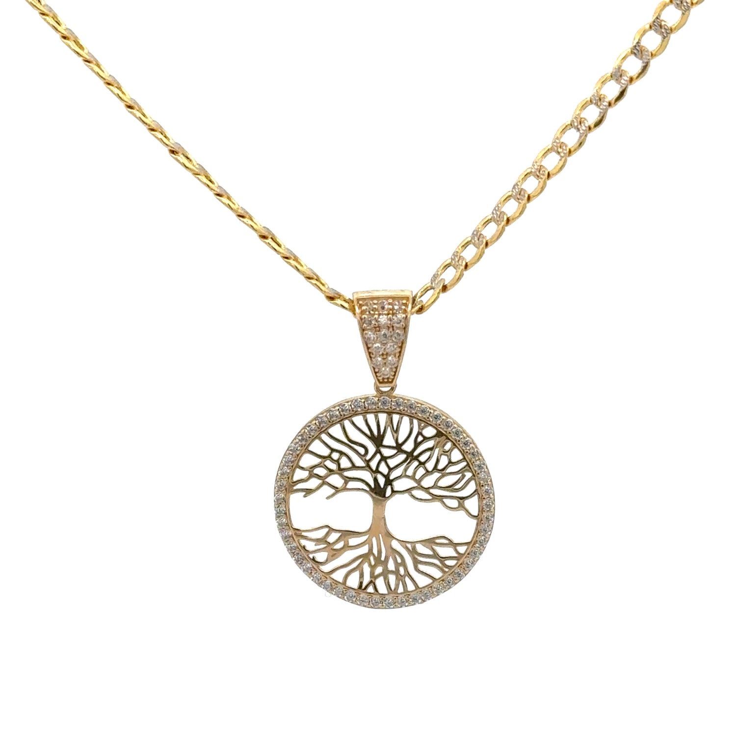 New 14K CZ Life Tree Pendant & Semi Solid Two Tone Cuban Chain Made of Real 14K Yellow Gold, 100% Guaranteed Gold. Buy with Confidence from H.J™️