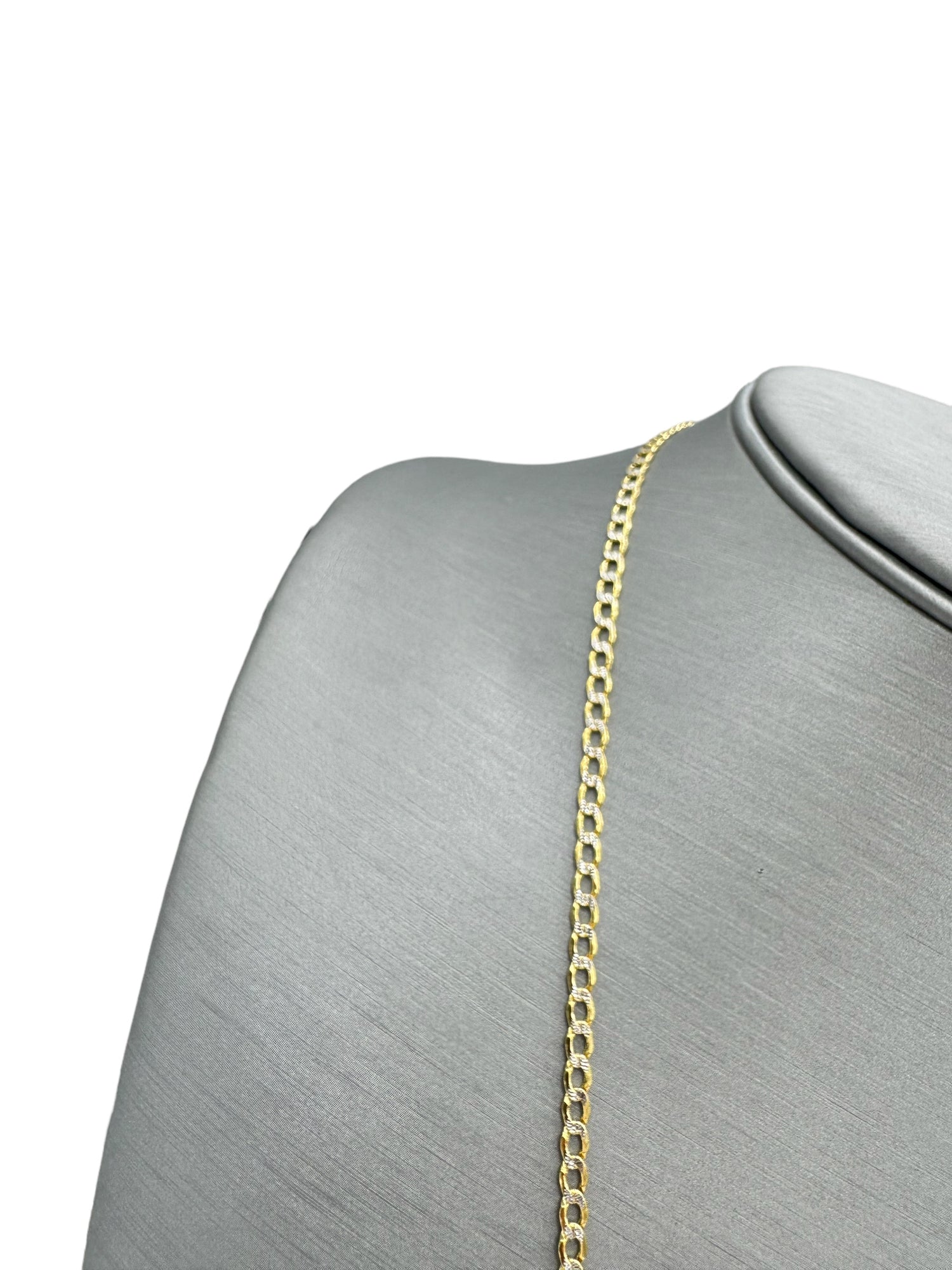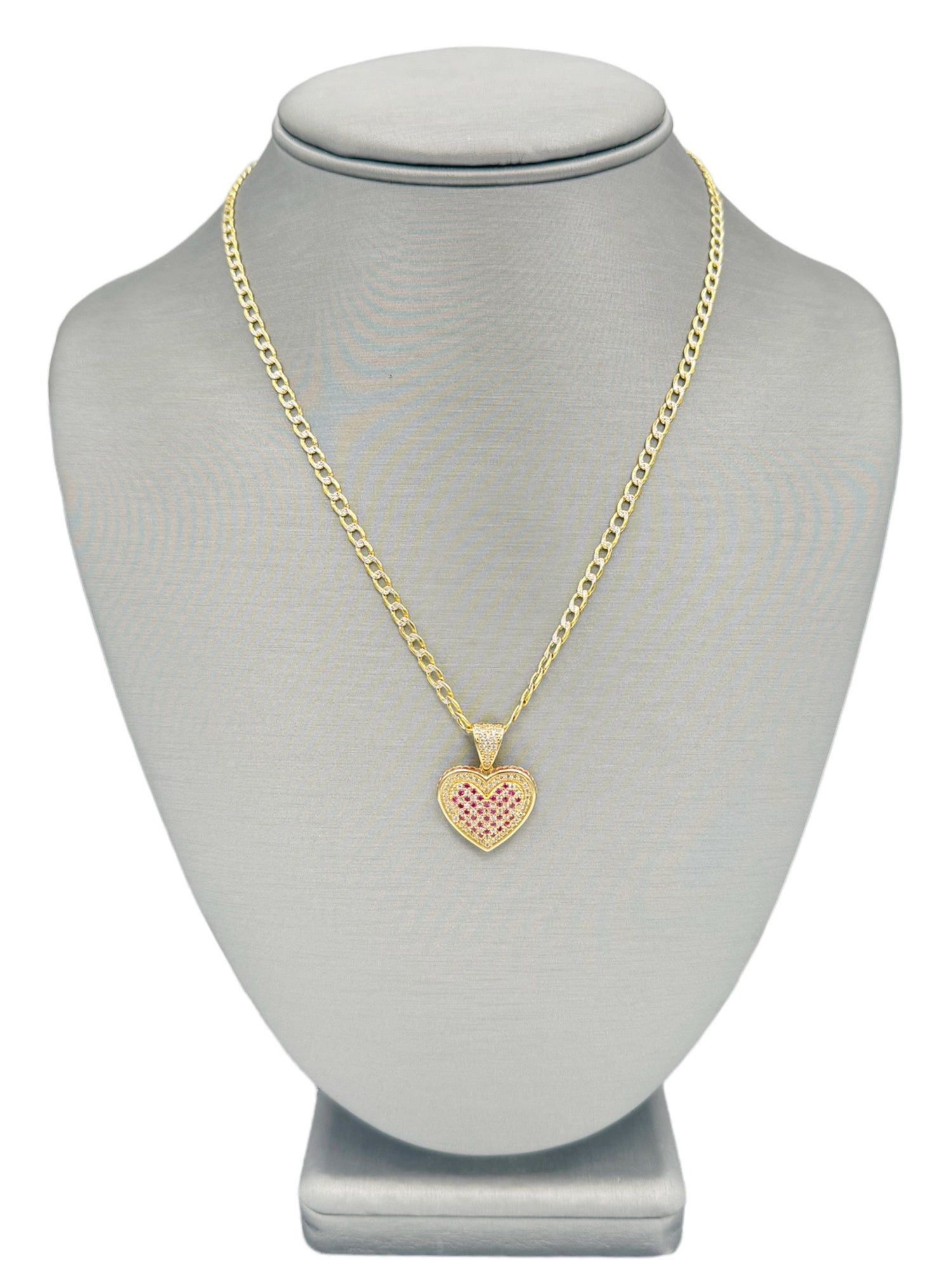 New 14K CZ Heart Pendant & Two Tone Cuban Chain (2.5MM). H.J™️